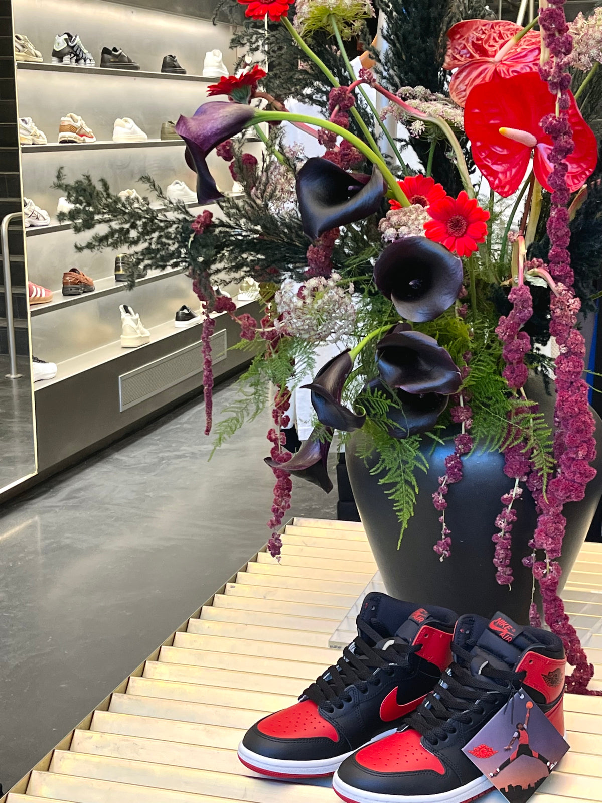 For Air Jordan's release of their "banned" sneaker in collaboration with CNCPTS, we created vignettes through their store. The florals brought a sense of luxury to the event, while the designs themselves felt cool, fresh, and effortless.