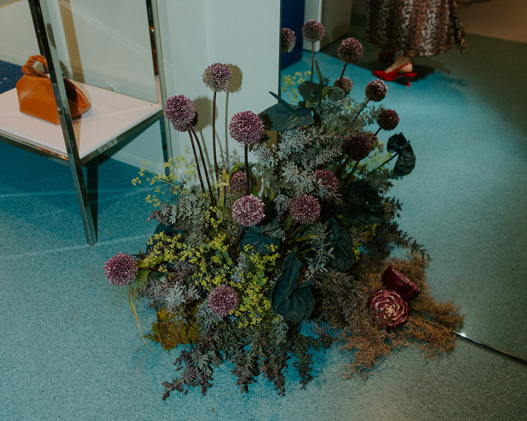 A meticulously sculpted vegetal mound anchored the food display at GANNI’s Newbury Street opening. Playful and eclectic, yet unapologetically bold just like the brand. The installation delivered instant impact from the moment you walked through the door up to a moment of closer inspection as guests wondered, is that… all real cabbage? We then created accent floral and vegetal moments throughout the store. Photography by Films by Em.